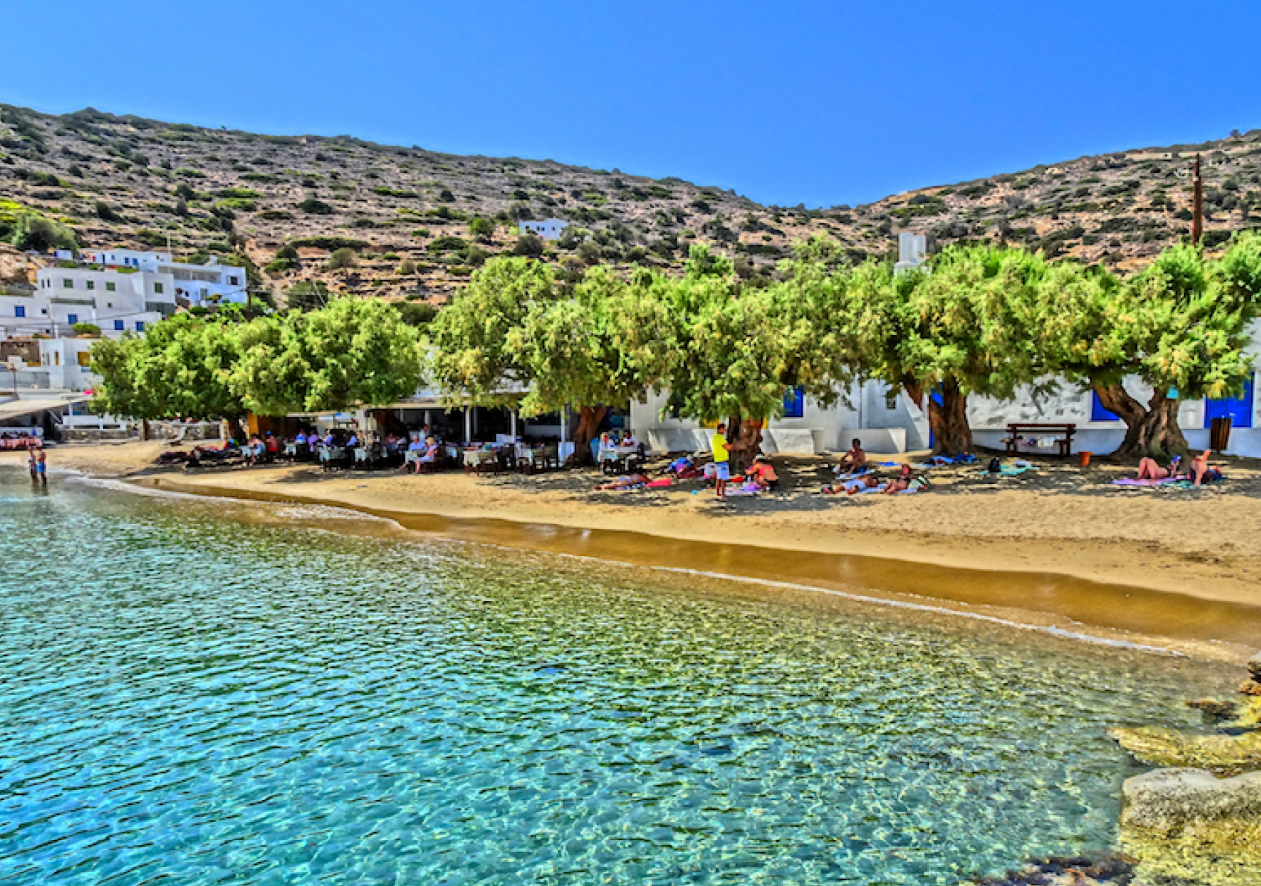 The beaches of Sifnos are for all tastes! Platis Gialos, the cosmopolitanbeach of the island for swimming and water sports. Breakfast with Loli(sweet pumpkin pie) at “Notos” and then at Bola beach bar with music,nice coffee and cocktails. In Glyfos or Faros, you will swim overlooking thestunning Monastery of Chrysopigi, the most beautiful church in Greece,where any girl who visits the island wants to get married. Then, snacks at“Lychnos” or “Gorgona”. In Fasolou, even if you do not want to swim, youmust go for the shrimp-spaghetti of “Dimitris”. It is no coincidence thatboats and sailboats drop anchor in the bay just for that! You shoulddefinitely eat fish at the beautiful beach of the settlement of Herronisos.When you go down towards Chrysopigi, on your left is Apokofto, on therocks around the church and on the right of the church are Saoures,small quiet beaches. In Vathi with the turquoise waters, you will enjoywater sports and diving and then you will have your meal by the seaside,at Tsikali. Meat, fish and traditional chickpea soup, in a unique spot by thesea. In Kamares, lie on the sand, listen to music and watch people partyingat the two beach bars of the beach, “Isalos” and “Follie”.